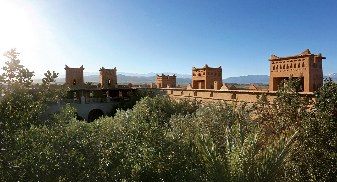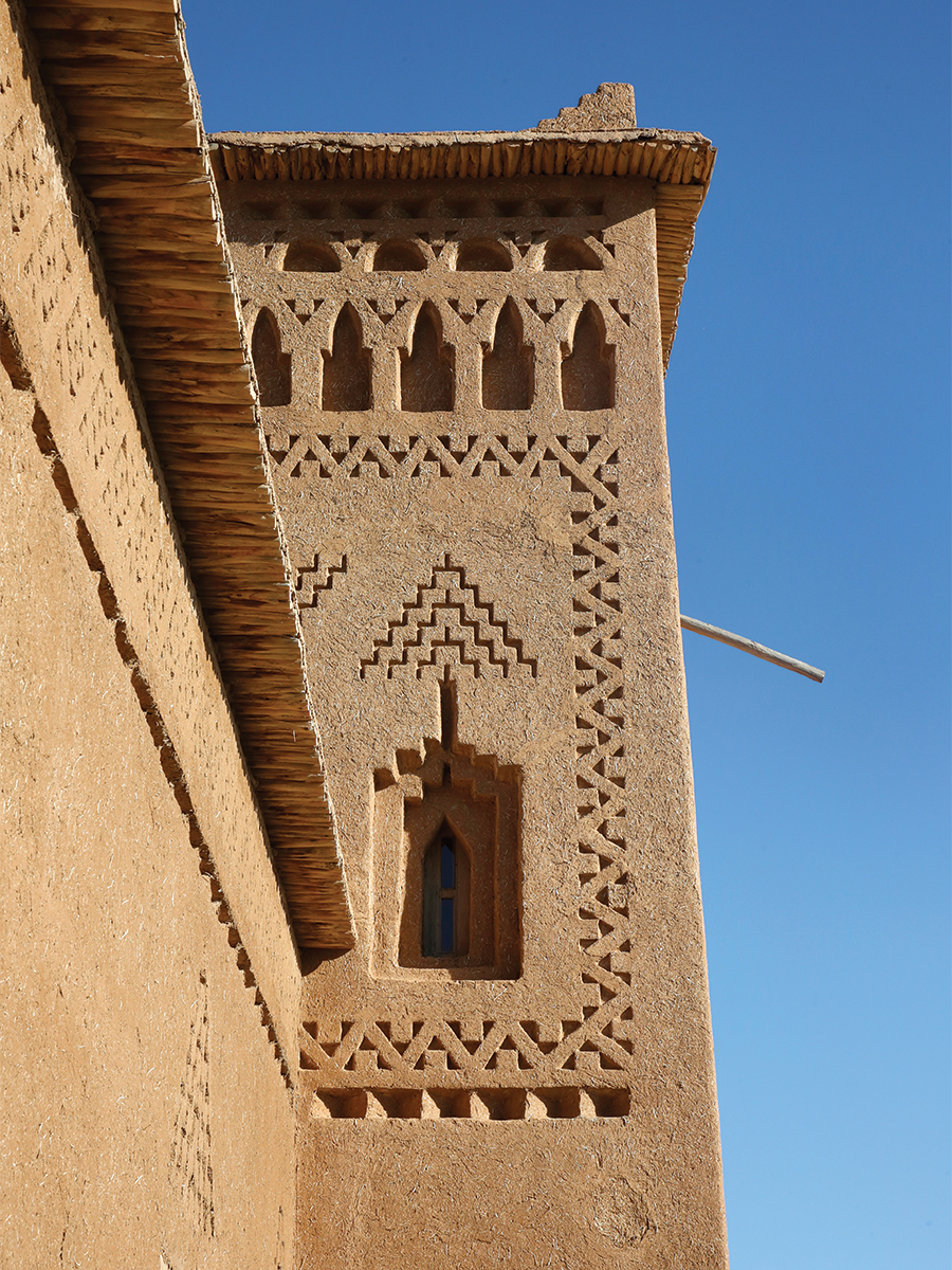 Les moindres détails architecturaux s’inspirent des grandes kasbahs du Sud, notamment celle d’Aït Benhaddou.