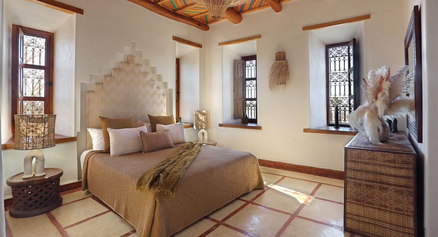 Une des suites, où le mobilier réalisé par Mustapha Blaoui côtoie des objets chinés.