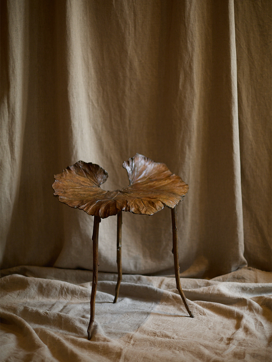 Tabouret Follia en bronze de Clotilde Ancarani. Patine marron.