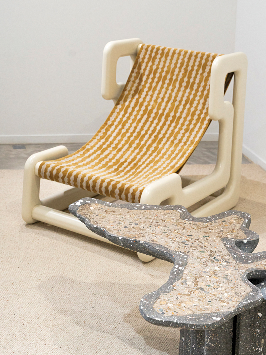 180 talents émergents et 375 lieux ont redessiné la cartographie créative parisienne. Les quartiers du Marais, Saint-Germain, Opéra et Bastille se sont transformés en scène à ciel ouvert. Dans le Marais, Alexandre Labruyère a présenté un mobilier aux volumes empilés dans des tons chauds et naturels. Les formes généreuses transforment chaque pièce en sculpture fonctionnelle. Un travail qui assume la dimension plastique du mobilier. À gauche, on retrouve Senimo qui s’essaye au textile pour la première fois.