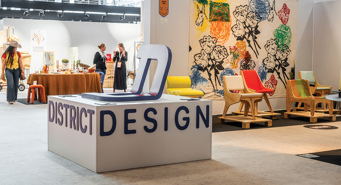 Scénographié par le collectif Hall Haus, le Design District réunissait 52 marques dans un espace aux codes visuels affirmés. Couleurs pop et créations audacieuses se côtoyaient sans hiérarchie.