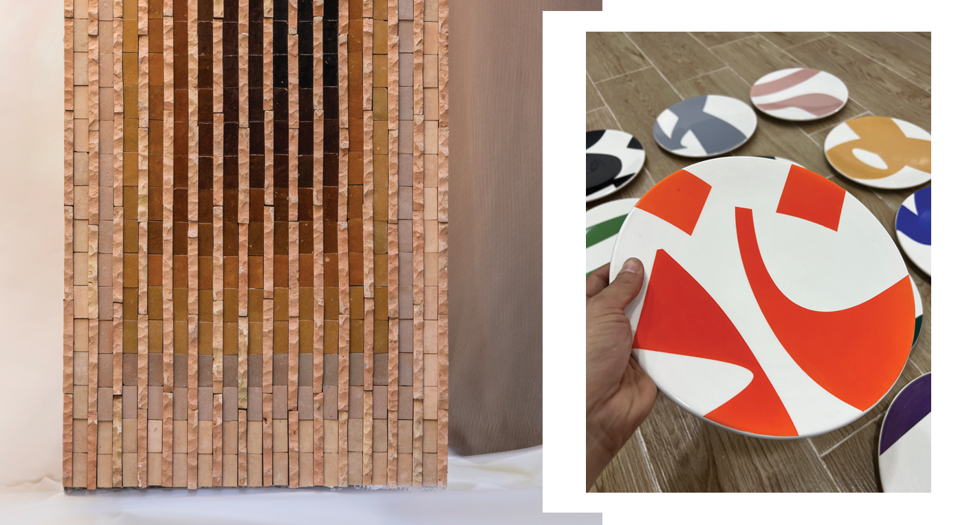 Quelques jours plus tard, changement de décor. Un pop-up store discret dans le Sentier. Brahim Boucheikha, enseignant en typographie arabe à Marrakech, présente dans une jolie mise en scène sa série d’assiettes Izri Design : Tissoura, « superposition » en berbère. Les lettres arabes et tifinagh ne sont plus des signes, mais des nervures, des creux, des reliefs. « La calligraphie et l’artisanat, c’est la même exigence. La même lenteur. »