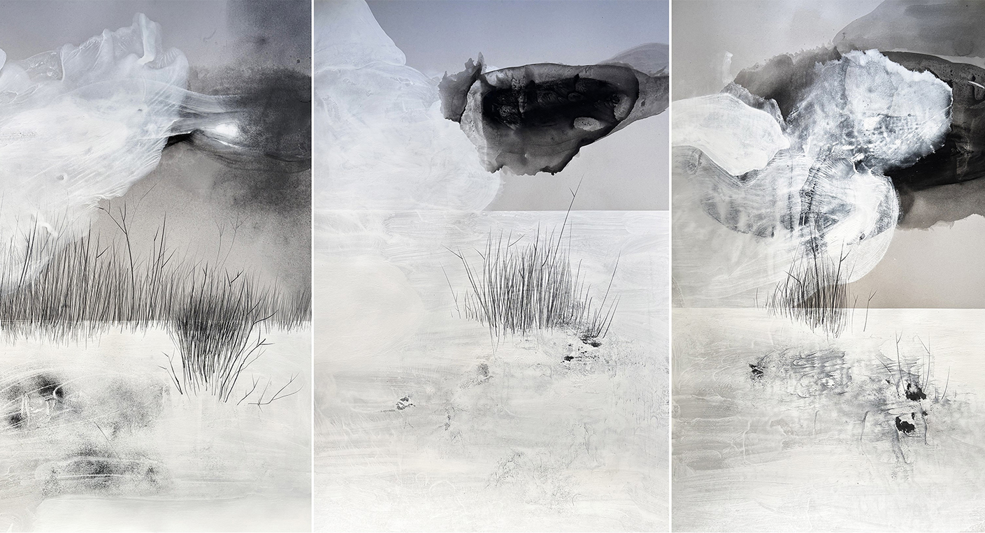 Souffle, technique mixte sur peau, 112 x 200 cm, 2025.