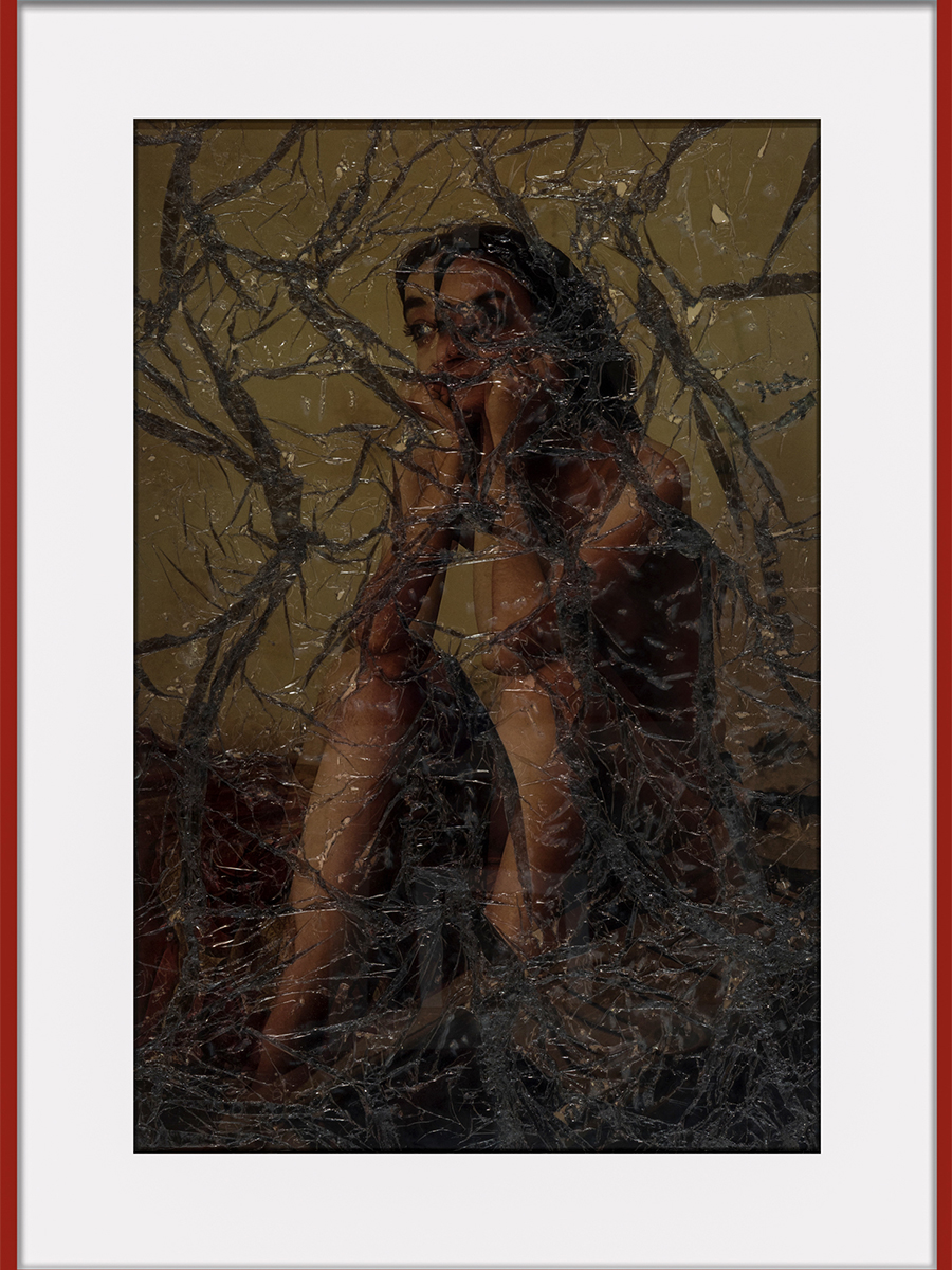 Khadija Jayi, sans titre, série Zâhir-Bâtin, 2025. Intervention artistique sur impression pigmentaire, vinyle adhésif, monté sur Dibond. 150 x 100 cm