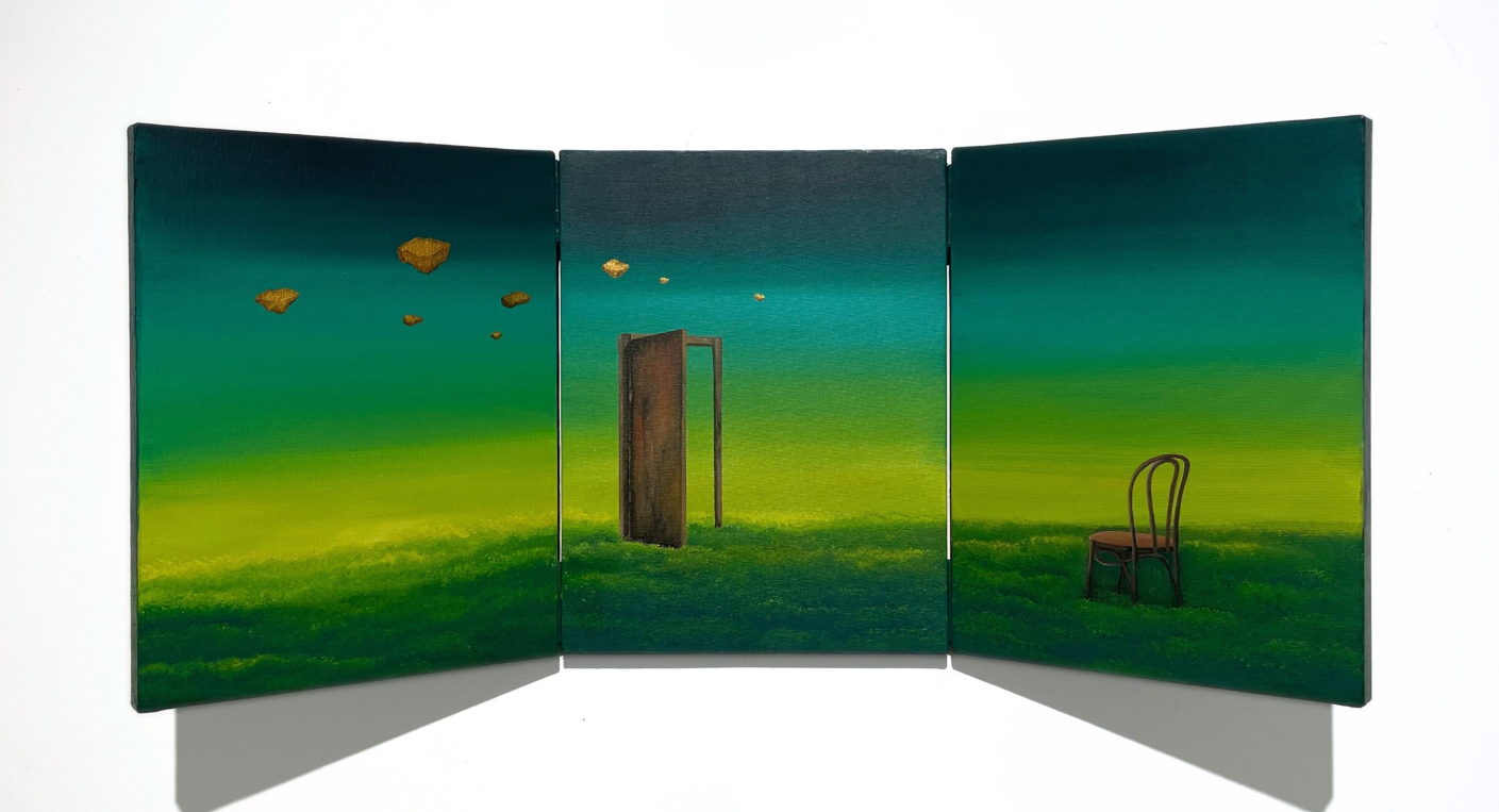 Houda Terjuman, Illuminating the path, 2025. Huile et acrylique sur toile, 40 x 90 cm. Courtesy AA Gallery.