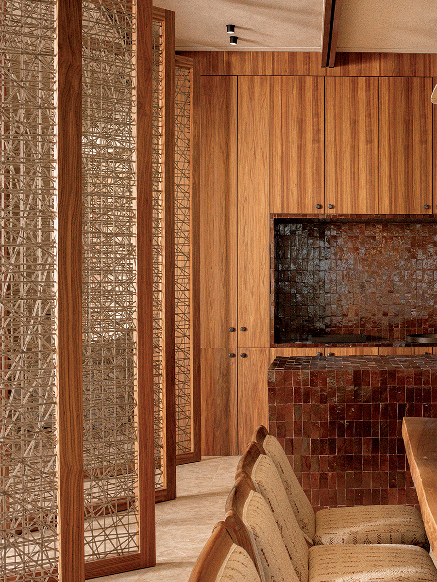 Zellige et boiseries dans la cuisine.