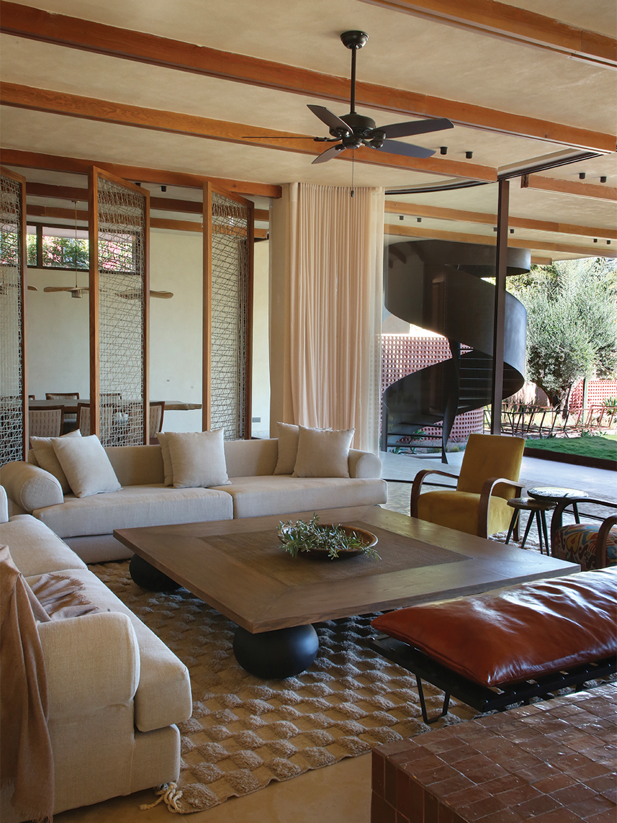 L’aménagement intérieur porte la signature de Mounia Benjelloun, fondatrice d’Imagie Maison. Amie d’enfance de l’architecte, elle a su tempérer sa modernité. « Lui a une vision plus contemporaine, moi je travaille des matériaux plus classiques », explique-t-elle.