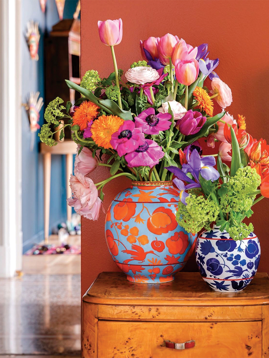 J’aime les intérieurs chaleureux où se mélangent objets chinés et nouveaux. Et des bouquets de fleurs : indispensables !