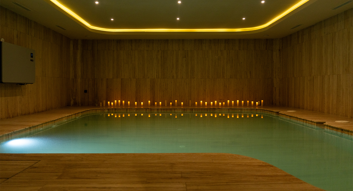 La piscine chauffée au sel, dédiée à l’aquayoga et à l’ostéopathie aquatique.