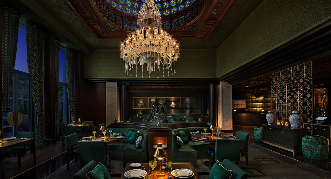 Le restaurant signature Rihla emprunte son nom aux carnets de voyage d’Ibn Battuta, et c’est bien de cela qu’il s’agit. La carte trace un itinéraire gourmand du Maroc à la Perse, de la Turquie au Levant jusqu’à l’Asie, dans l’esprit des routes qu’empruntait l’explorateur tangerois. Un ensemble de musiciens traditionnels accompagne le repas.