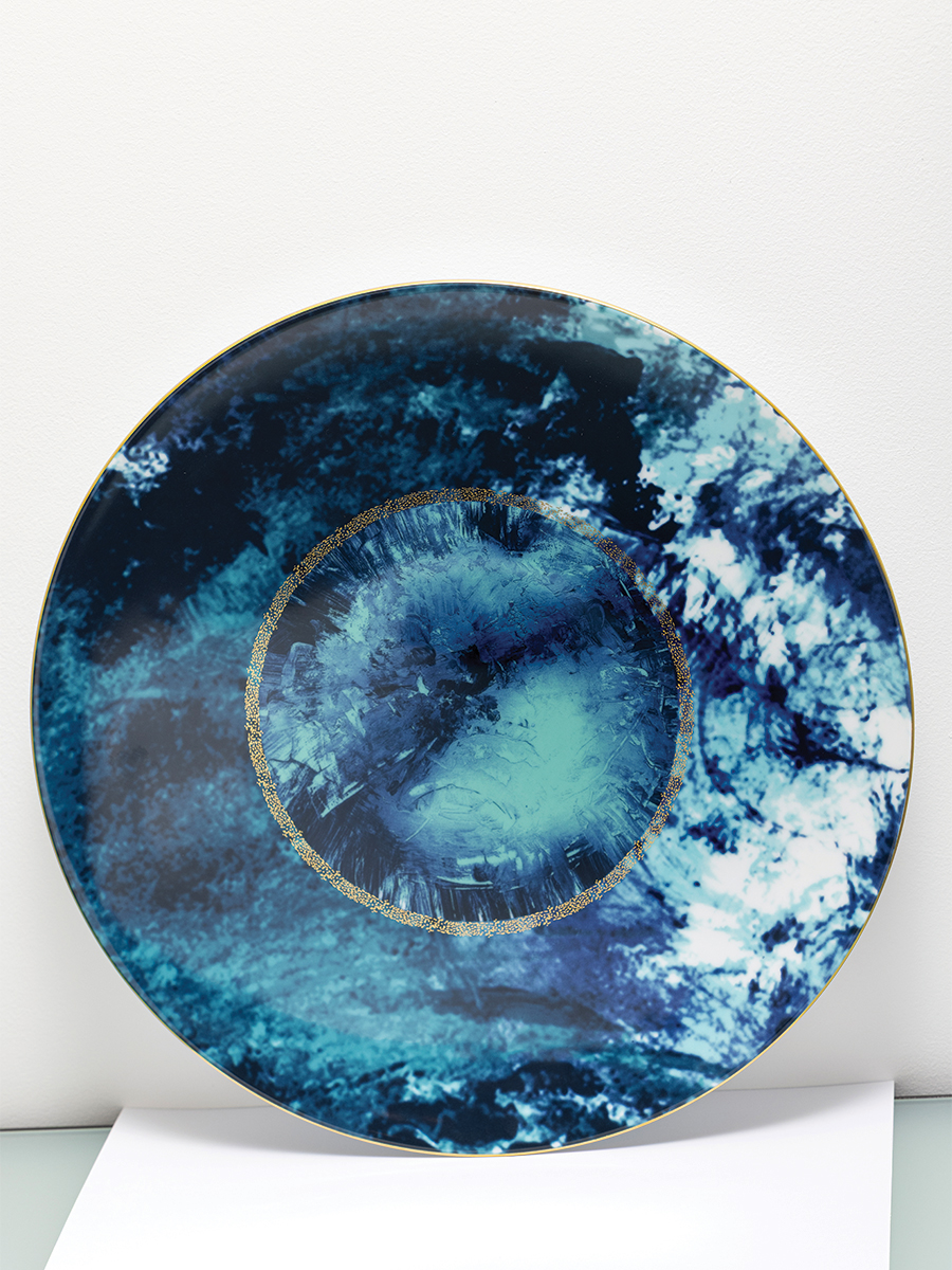 Service de table Océan bleu en porcelaine de Limoges. Assiette plate. Haviland chez ICONIC.