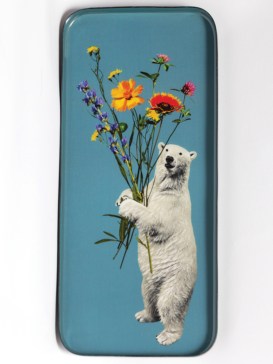 Un valet en bronze dessiné par Isabelle Stanislas et fabriqué par les Ateliers Bataillard, une ferronnerie d’art centenaire. Le long du mur, une série de photos de voyage de son ami Jérôme Petit.