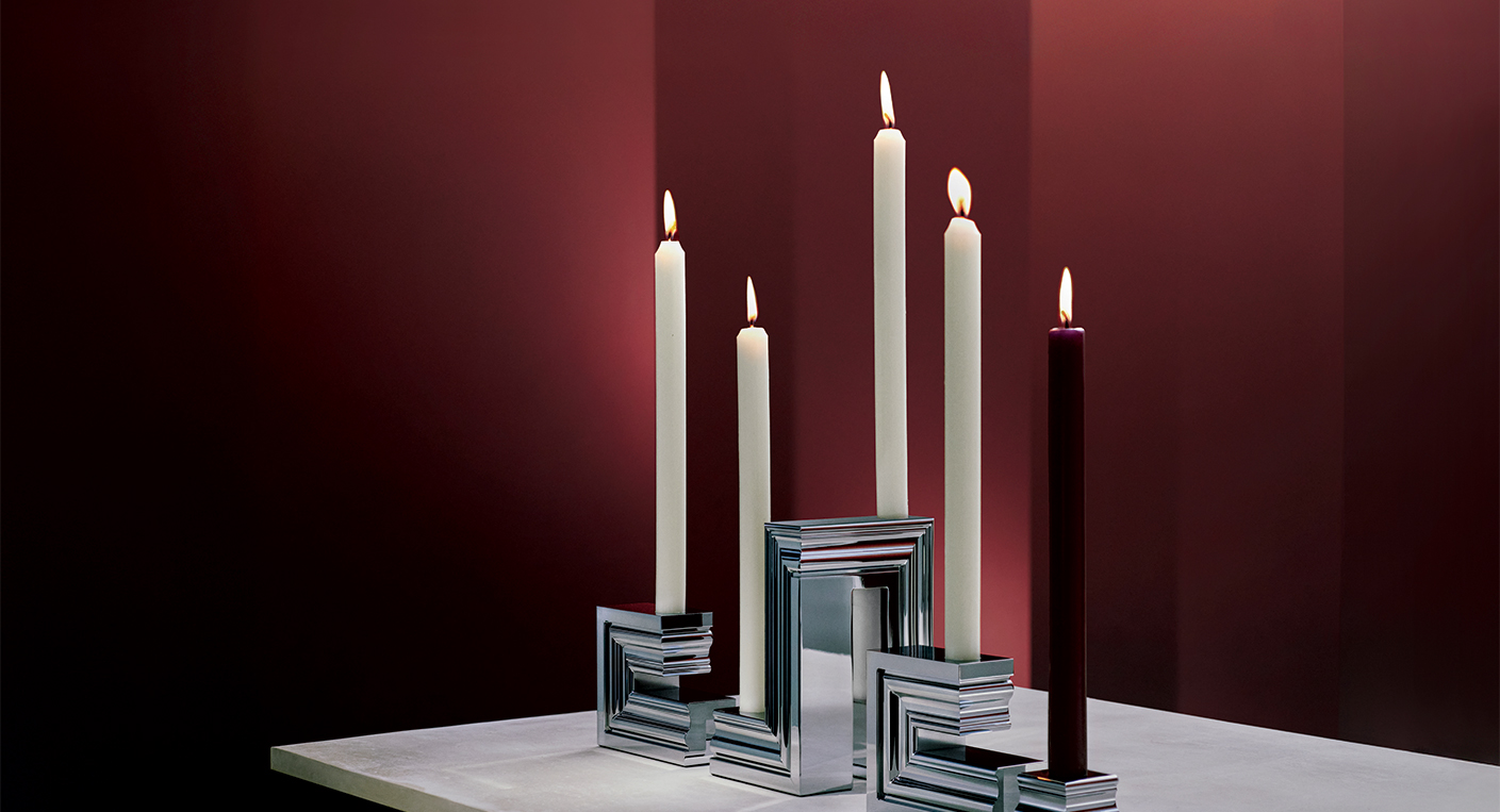 Pour Christofle, l’artiste imagine Perspective, une collection qui déconstruit les moulures traditionnelles pour créer chandeliers, vases et candélabres sculpturaux. Six pièces modulaires s’assemblent au gré des envies, inventant des centres de table déstructurés et modernes. Vendus séparément, ces éléments graphiques libèrent l’imagination et réinventent l’art de la table. Une modularité créative qui fait danser l’orfèvrerie.