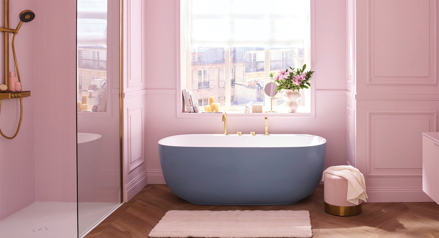 Finition blanc mat au toucher velours, immersion profonde de 38 cm, plage latérale compatible robinetterie. L’extérieur est personnalisable sur les finitions mates, dans un choix de couleurs pastel. Fabriquée en acrylique, livrée prête à poser avec pattes de fixation et siphon. JACOB DELAFON.