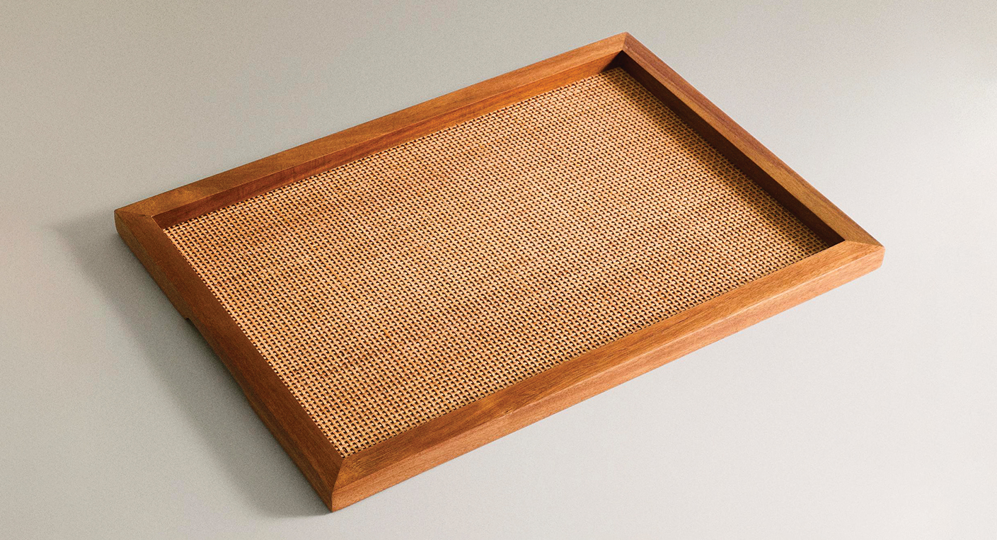 Plateau rectangulaire en bois avec fond en rotin. Poignée dessinée à chaque extrémité pour une prise en main facilitée. Dim. H. 3 x l. 54 x P. 37 cm. ZARA HOME